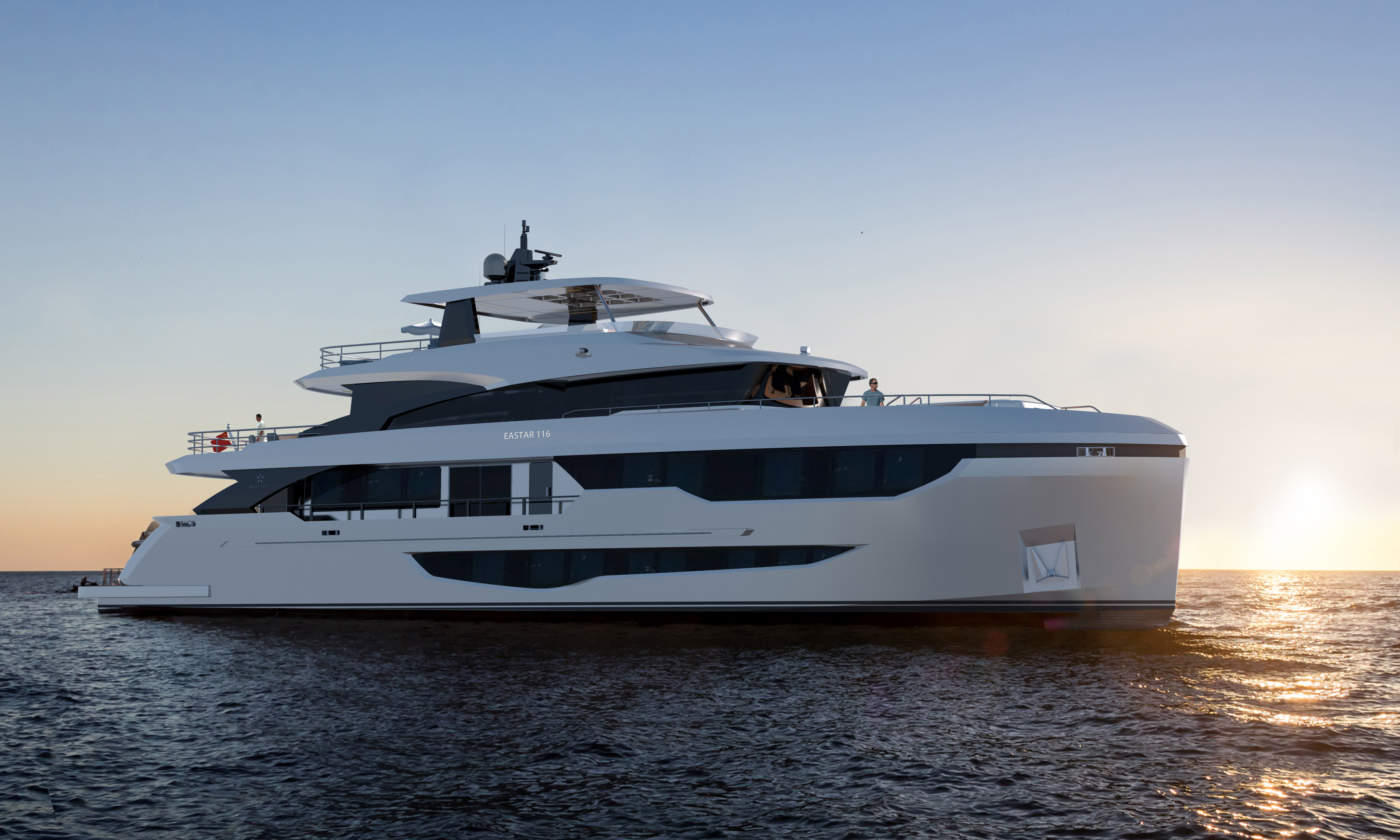 TY116是一款完美匯集了傳統(tǒng)和現(xiàn)代審美的超級游艇,在整體設(shè)計(jì)上,這款超艇有著簡潔動感的外觀,干凈利落的線條,艙室空間和高度恰到好處的展現(xiàn)了超艇的舒適和豪華;主甲板和上層甲板的活動區(qū)可以欣賞360°的海景,可同時接待8位以上親朋好友在超艇上游玩和休息,船尾艇庫設(shè)計(jì)是水上運(yùn)動器材的良好存放場所。TY116除了具備舒適的航海性和空間感外,飛橋甲板區(qū)擁有比同類艇更寬敞的活動空間和完善的戶外休閑功能,如大型按摩浴缸、日光浴區(qū)、躺椅、餐飲區(qū)、吧臺區(qū)等,還可供船主及賓客在星光夜空下舉辦不一樣的戶外盛宴。