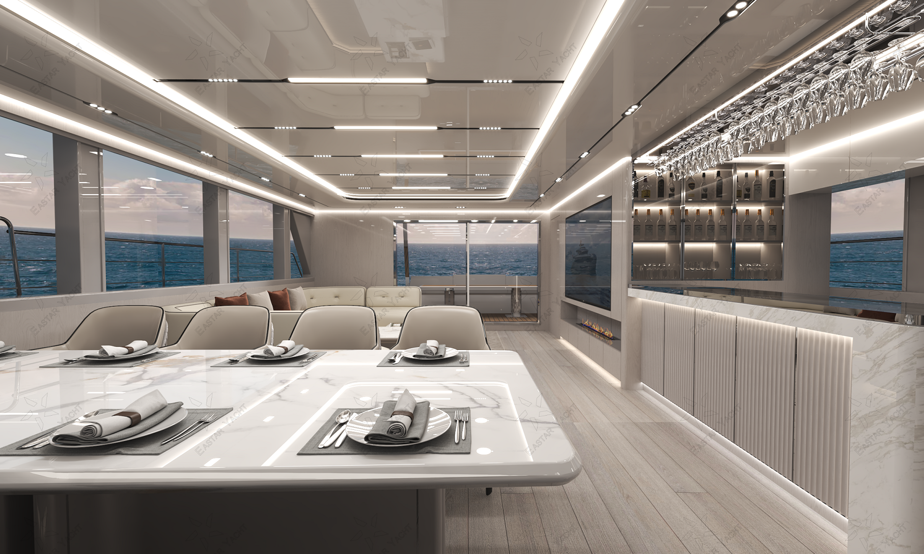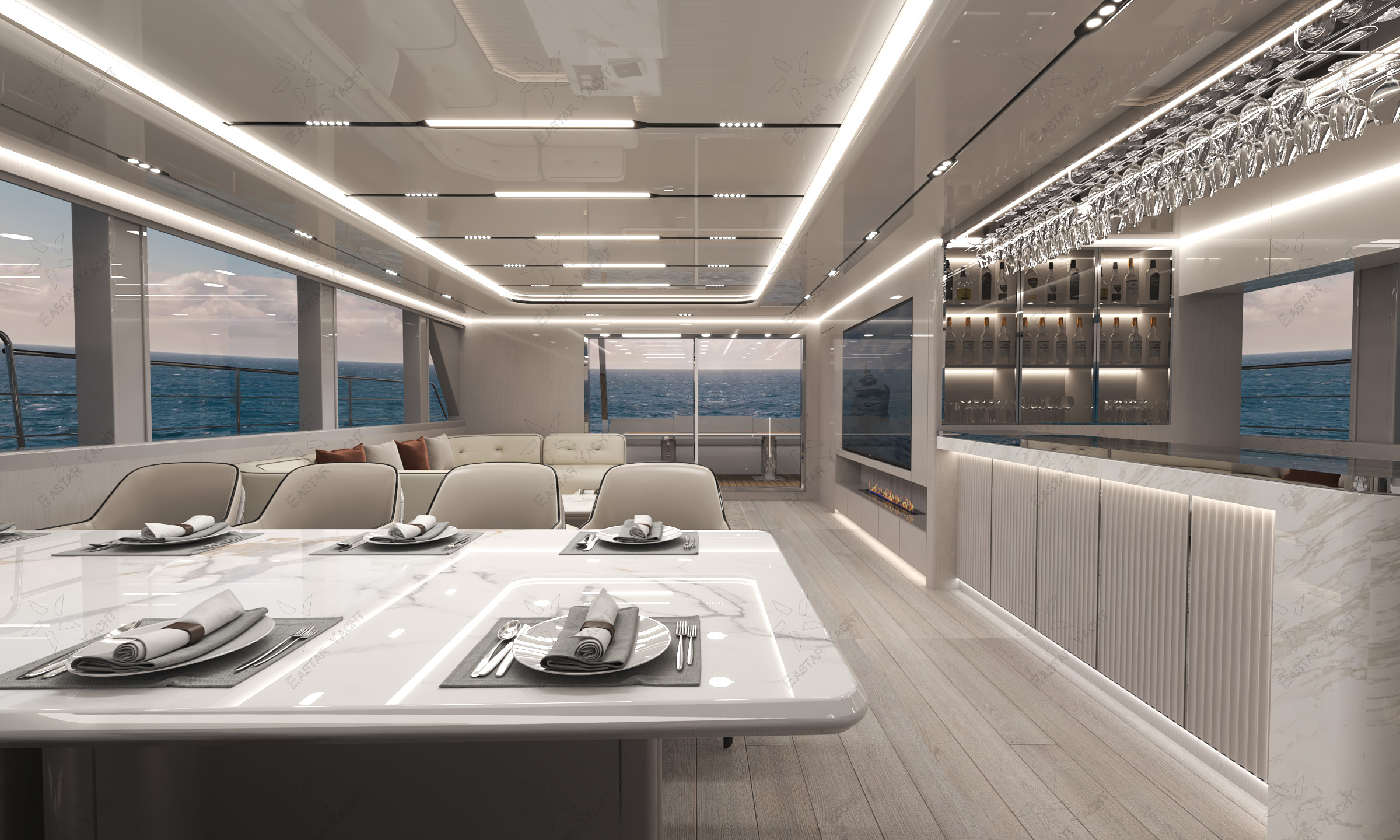 TY560是一款由天域自主創(chuàng)新研發(fā)的雙體動(dòng)力游艇,該艇開(kāi)創(chuàng)了集豪華與舒適為一體的動(dòng)力艇新世界,其輪廓彰顯著永恒的高雅;設(shè)計(jì)師以開(kāi)放、極簡(jiǎn)線條為基礎(chǔ)的設(shè)計(jì)手法,打造出自由寬敞、溫和舒適的奢華空間,最精髓的設(shè)計(jì)理念是簡(jiǎn)潔,所有設(shè)計(jì)考量都要精細(xì)而恰到好處,TY560是一款低調(diào)內(nèi)斂的雙體游艇,它就是一艘漂浮在海上的多功能“移動(dòng)行宮”,在性能及功能方面它具備滿足船東對(duì)游艇的各種需求。
