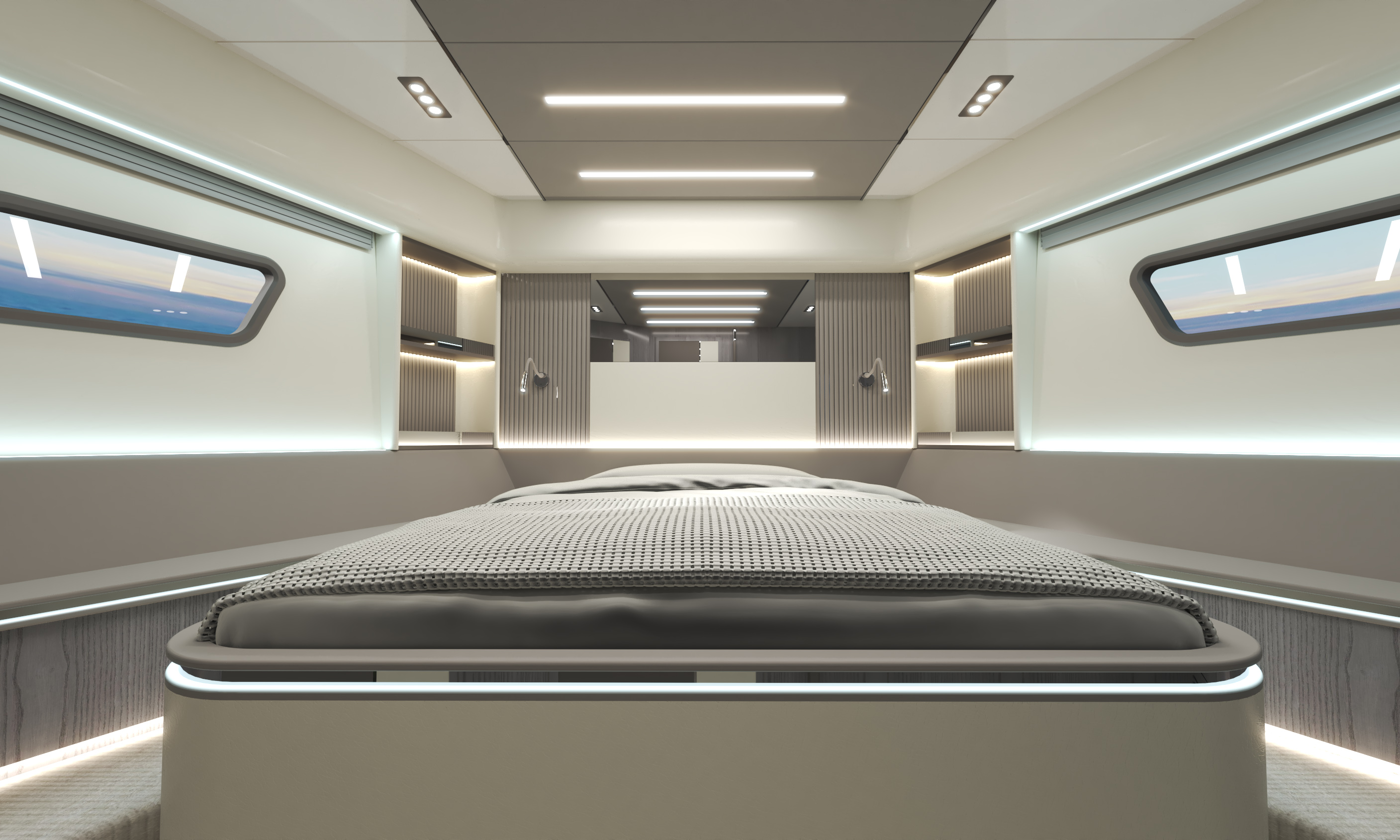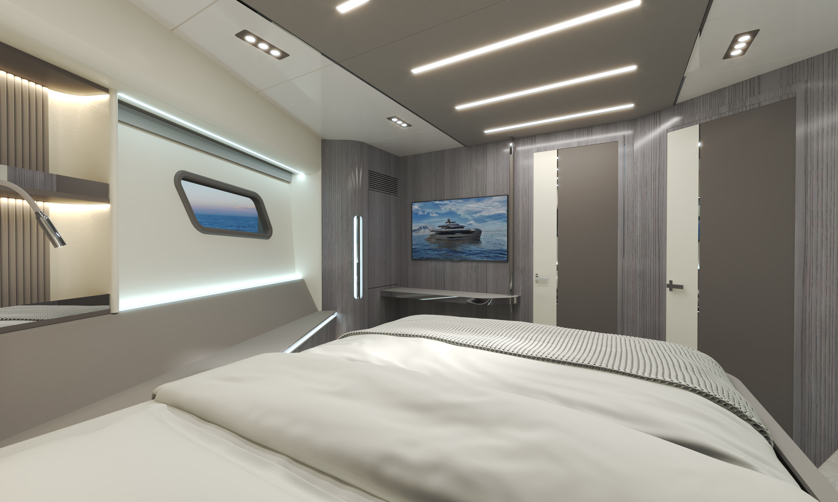 定制化豪華商務(wù)沙龍廳,空間最大化,大窗戶審美設(shè)計(jì)同時(shí)也提升了甲板和內(nèi)部整體空間的通透性。