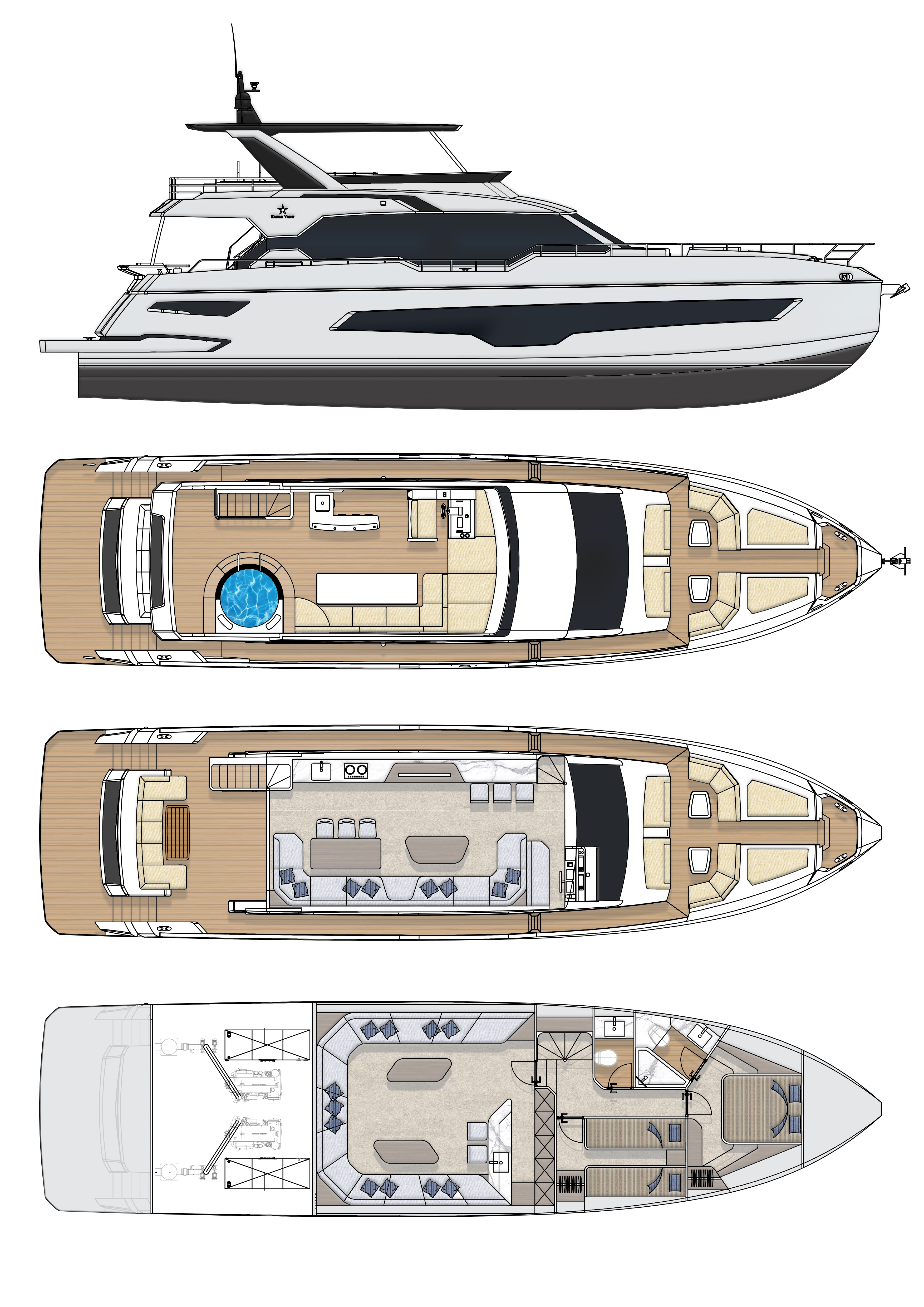 布局完美的飛橋甲板設(shè)計(jì),配置戶外浴缸,私密專屬,于海天之間盡情釋放身心。