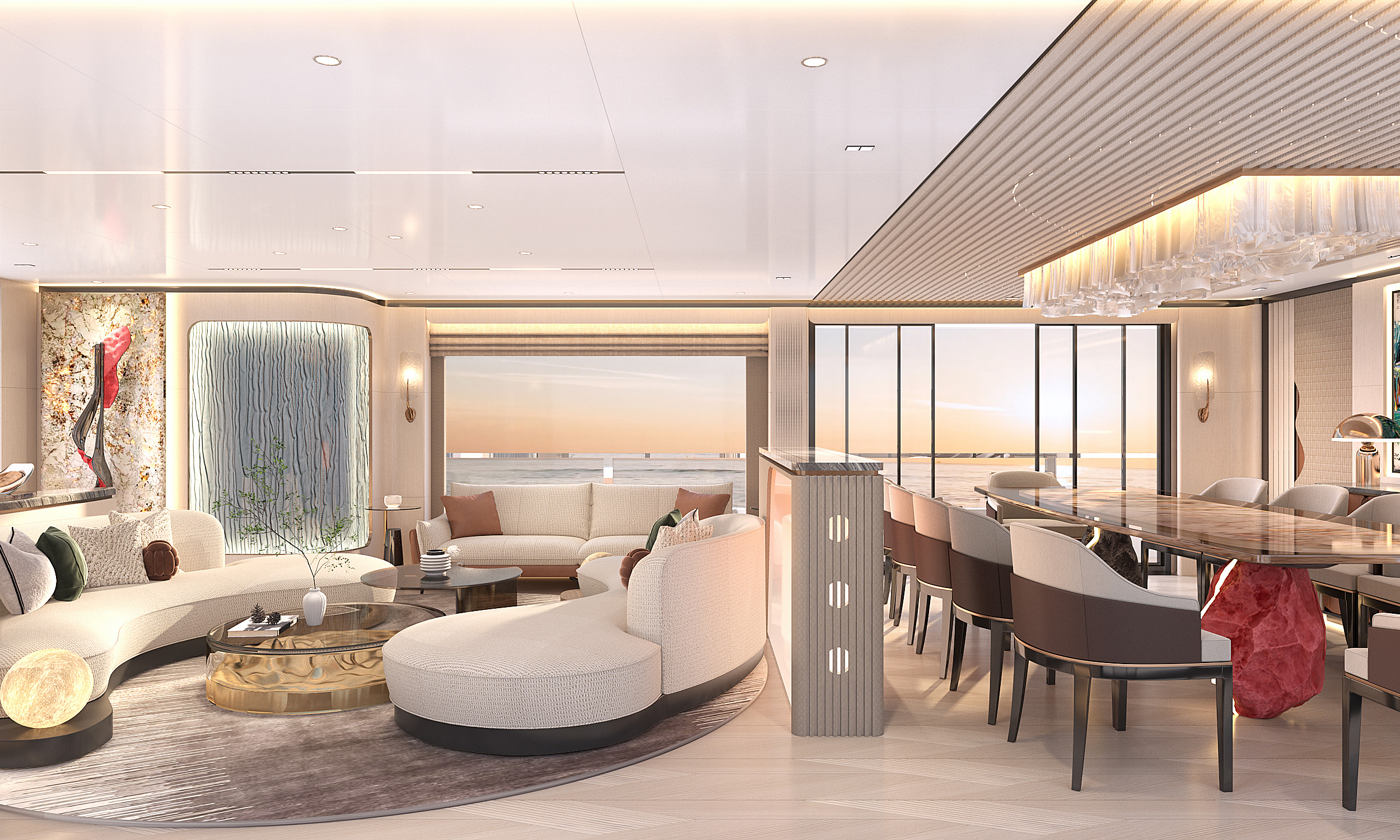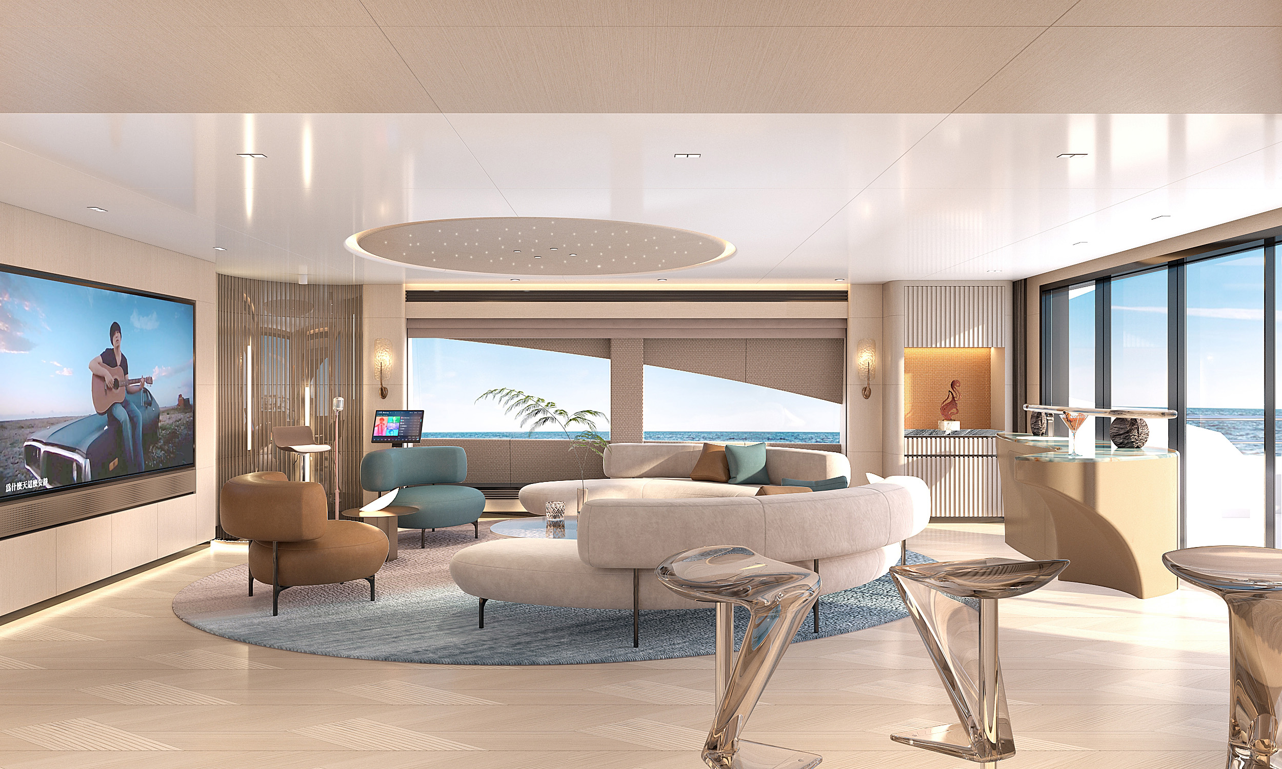定制化豪華商務(wù)沙龍宛如一座海上的奢華殿堂,彰顯著尊貴與品味的極致融合。