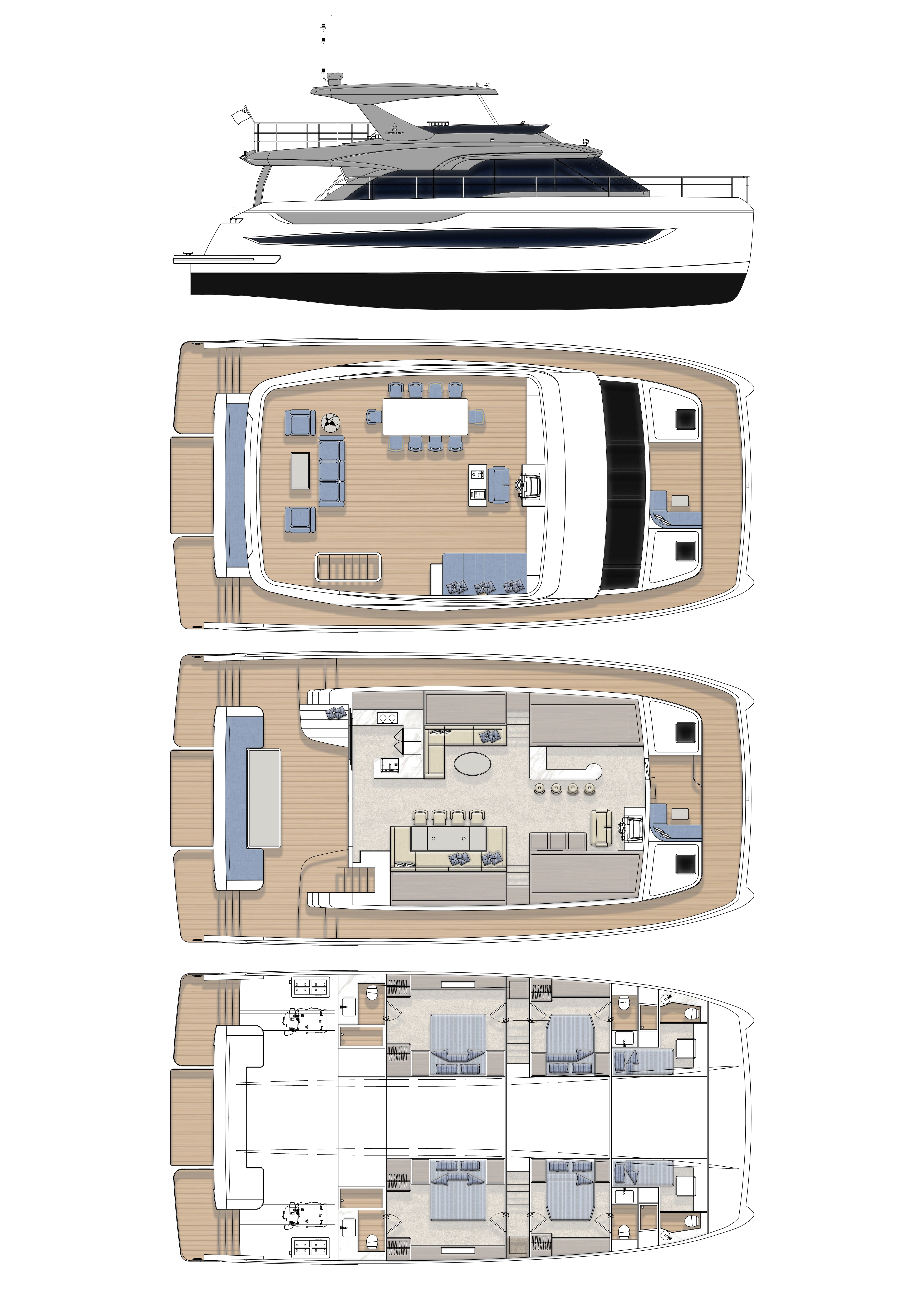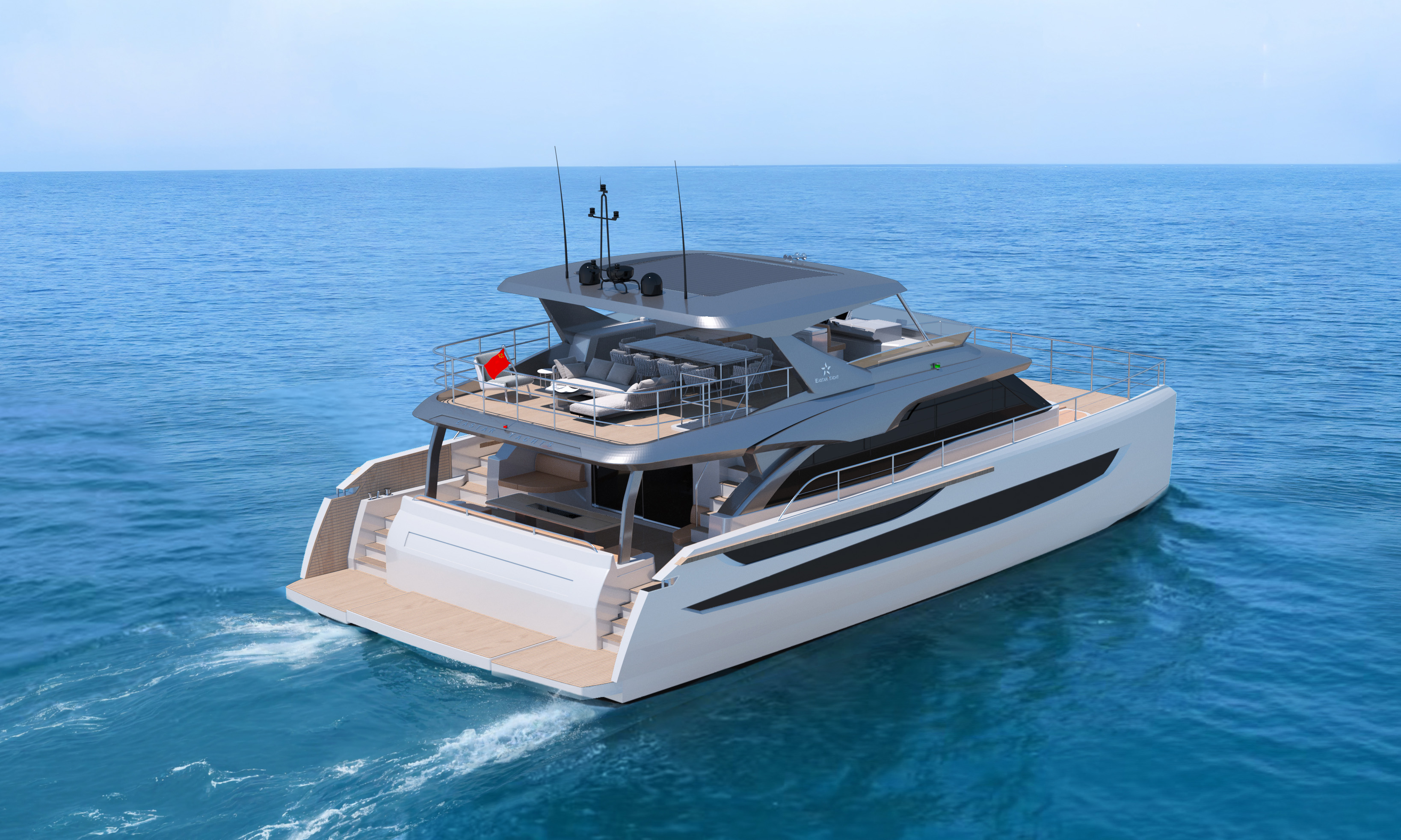 TY660雙體游艇以突破性設(shè)計重塑海上生活美學。其外形采用超前創(chuàng)新輪廓,流暢干練的弧線勾勒出飽滿優(yōu)雅的身姿,既彰顯尊貴氣度,又將功能性與美感完美融合。