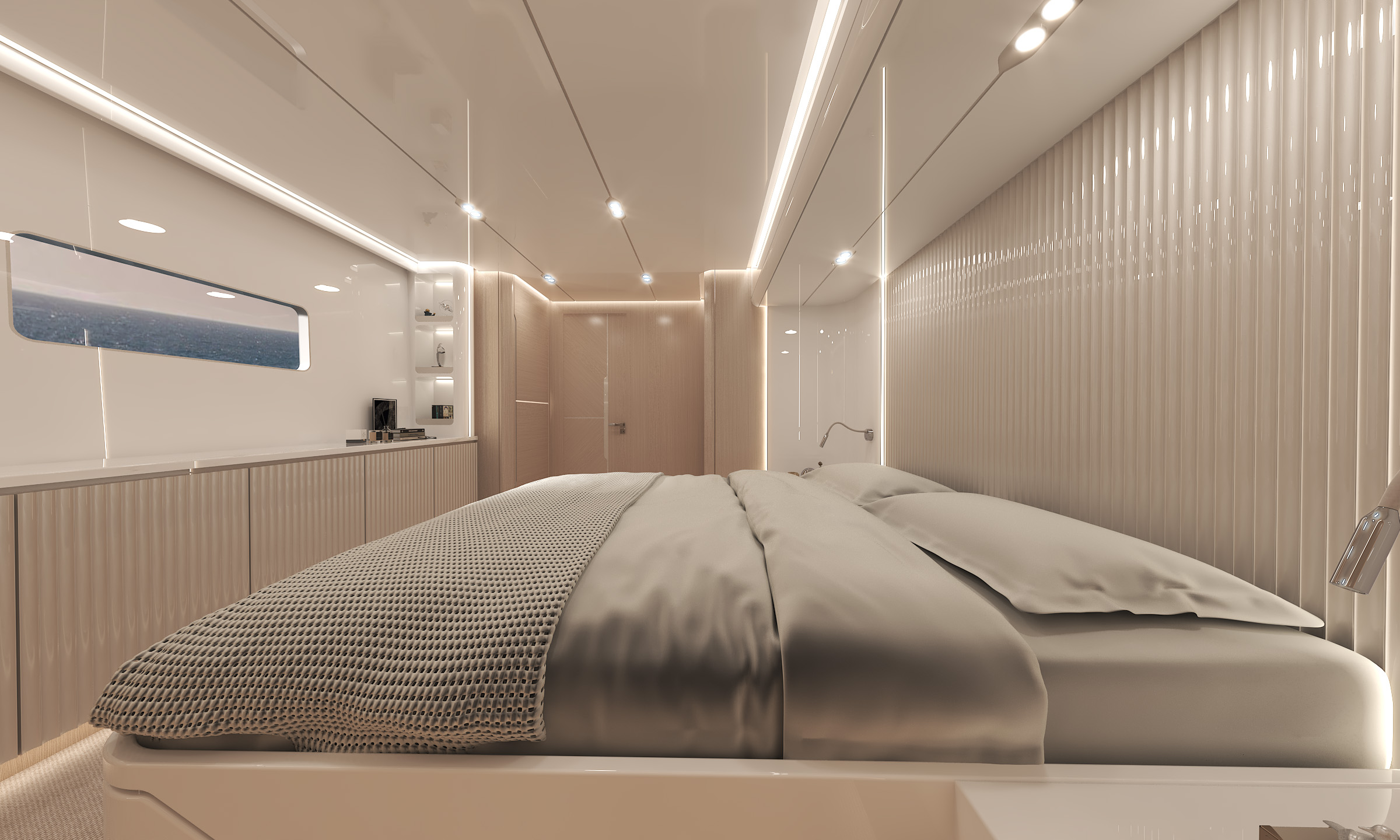 曲面飛橋甲板獨具匠心,通過獨特的弧線形設(shè)計拓寬船側(cè)窗戶面積,讓自然光線如瀑布般傾瀉而入,不僅大幅提升室內(nèi)采光效果,更賦予船內(nèi)開闊通透的視覺感受。
