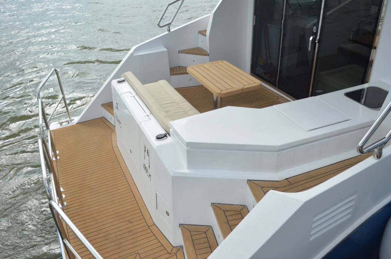 36尺的船,船寬達(dá)到驚人的3.36米,船艇更自帶休閑功能區(qū)與商務(wù)休閑接待區(qū),工作娛樂兩不誤。游艇還配置800升容積油箱,比市面上的游艇平均多出三分之二的容積,擁有超長續(xù)航能力。