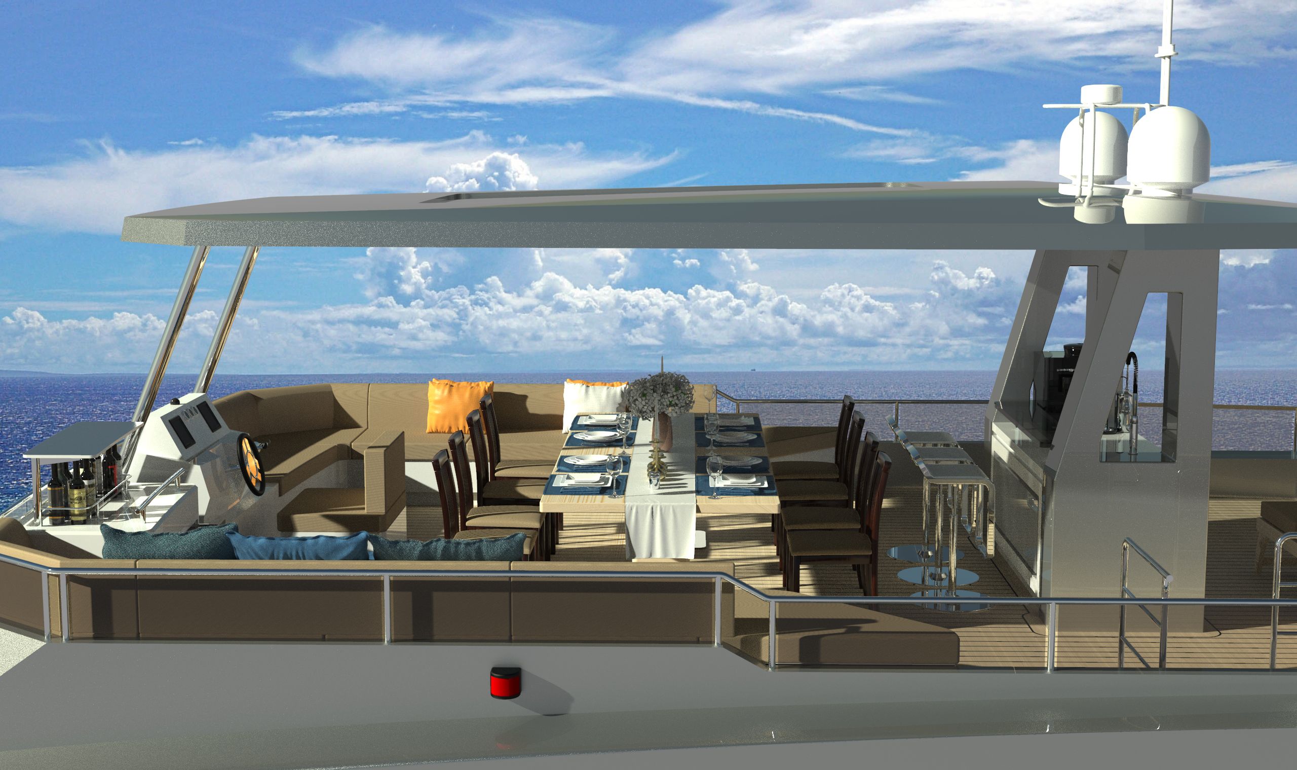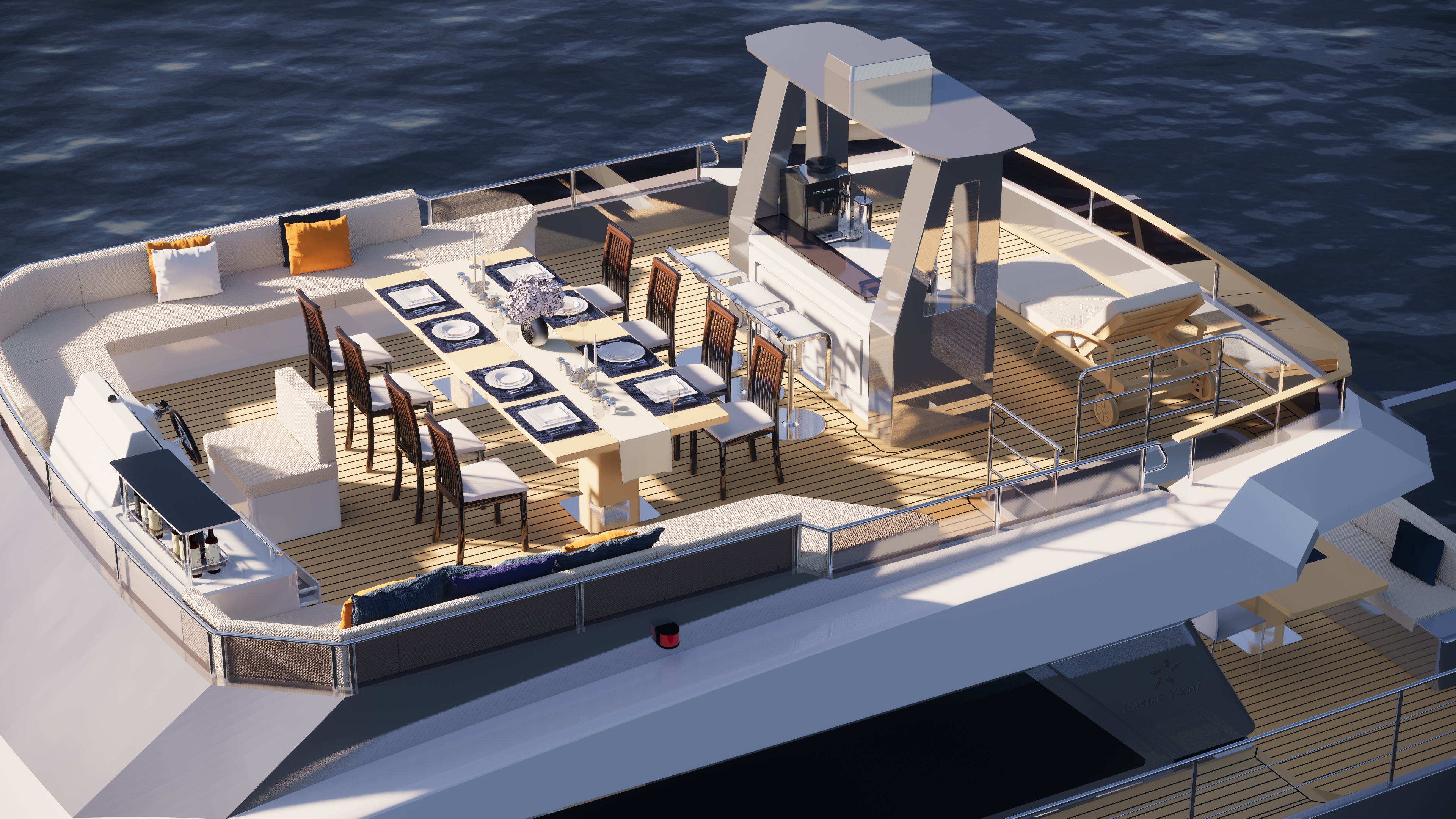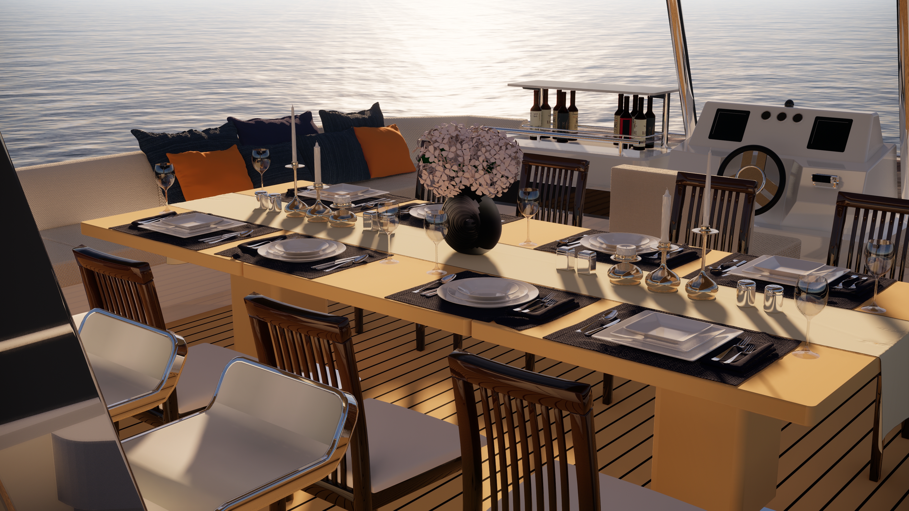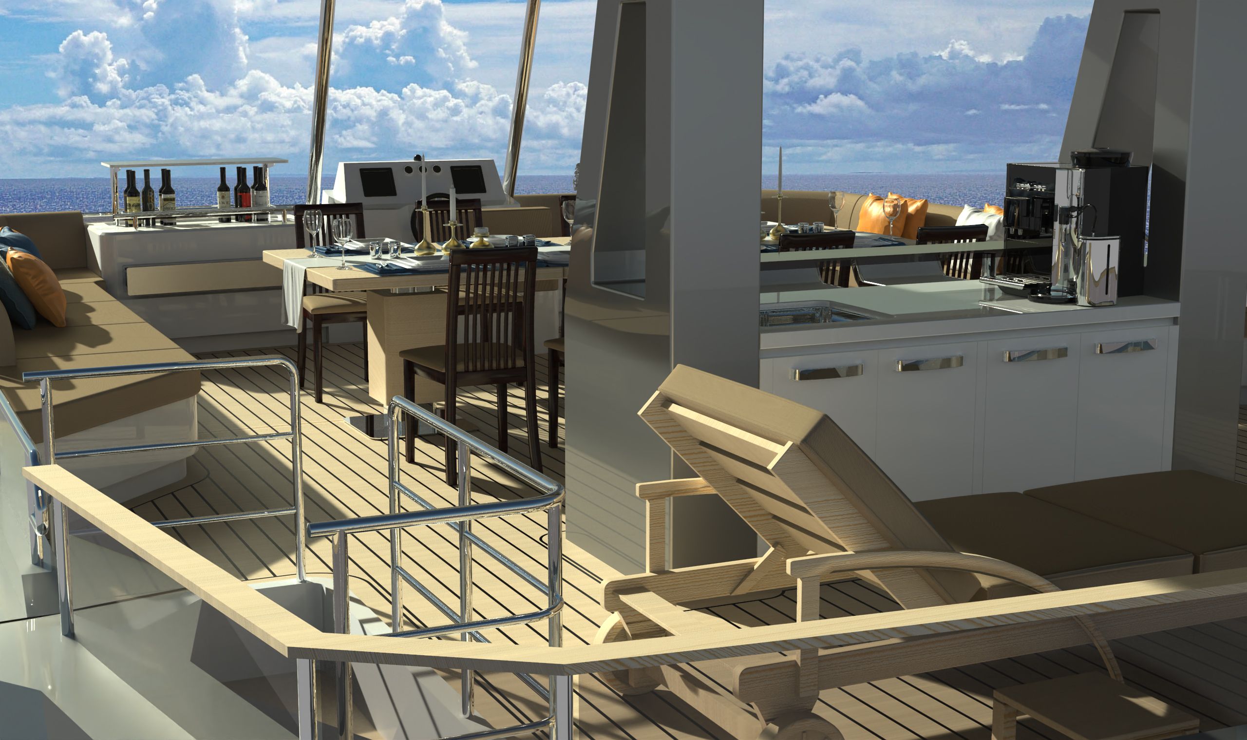 飛橋甲板分為不同的功能區(qū)域:娛樂區(qū)、餐飲區(qū)、活動區(qū),飛橋駕駛臺旁邊更是配備了升降酒柜。在設計師眼里,這里沒有人為的限制,更沒有過時的規(guī)范,空間銜接處也是簡而有韻,有神有型。