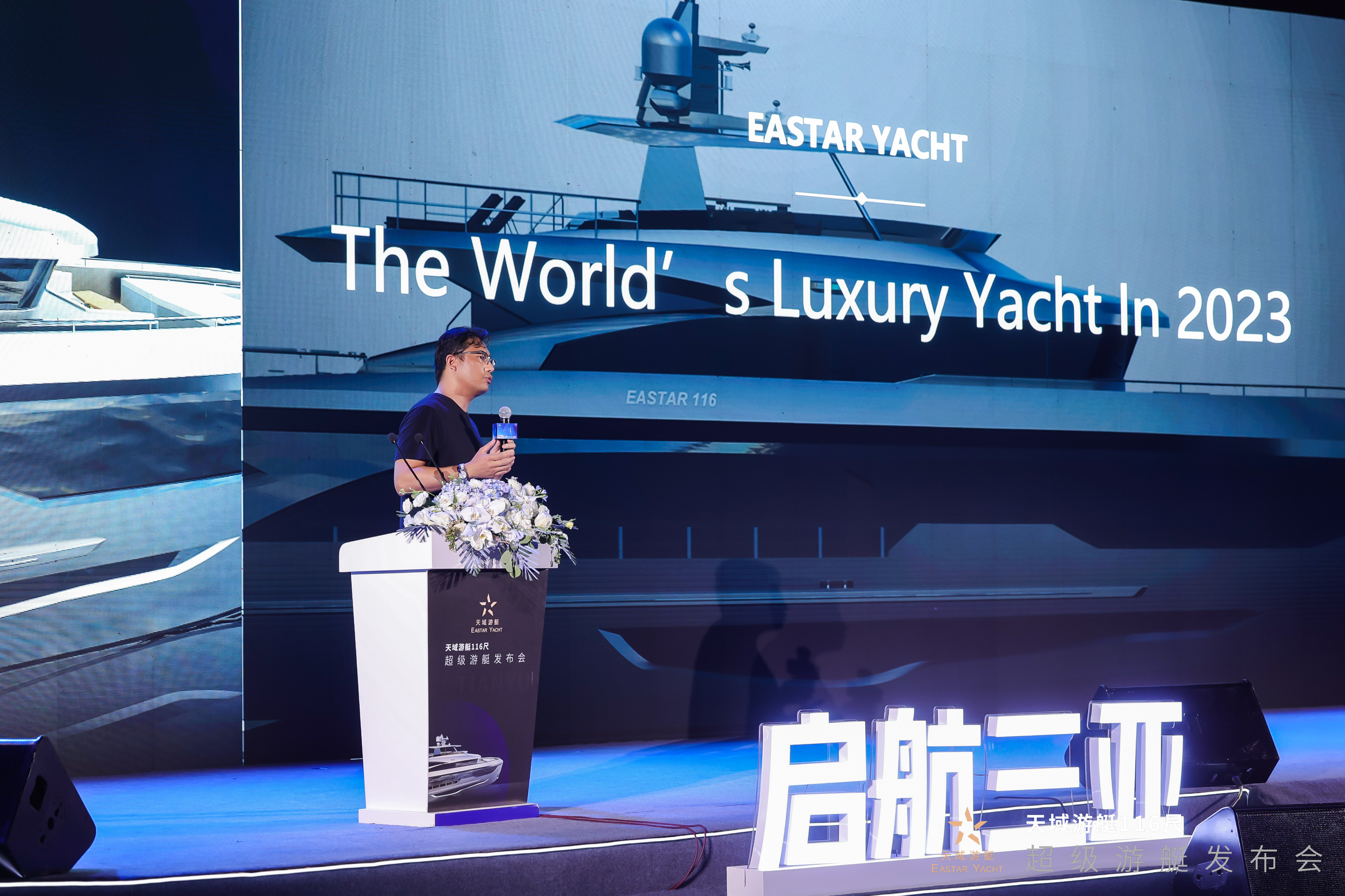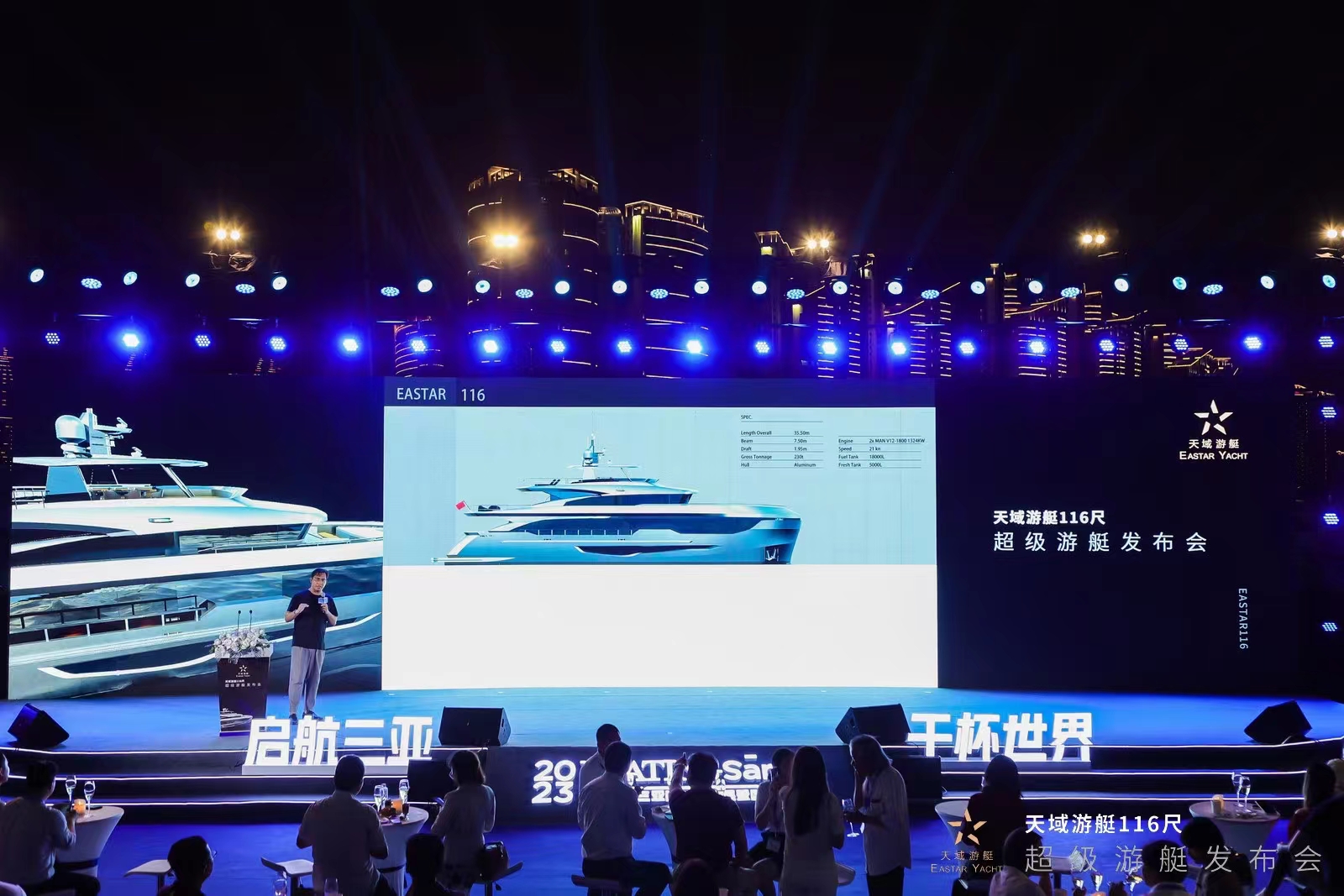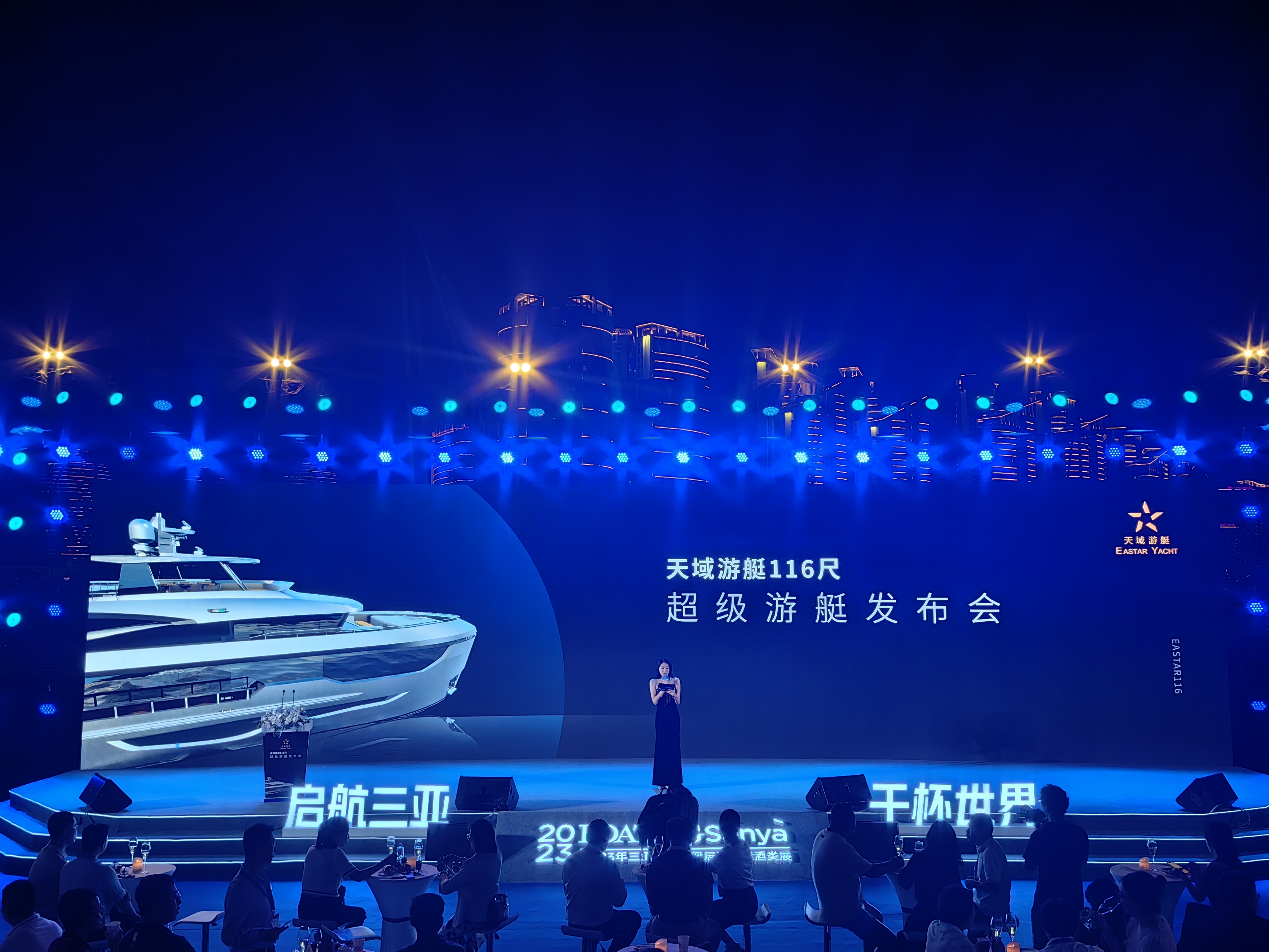 4月15日天域游艇在三亞國(guó)際游艇中心召開“璀璨之夜 見證奇跡——天域游艇116尺超級(jí)游艇發(fā)布會(huì)”,發(fā)布會(huì)現(xiàn)場(chǎng),現(xiàn)場(chǎng)賓客、媒體及觀眾匯聚一堂,共同見證這特殊時(shí)刻。