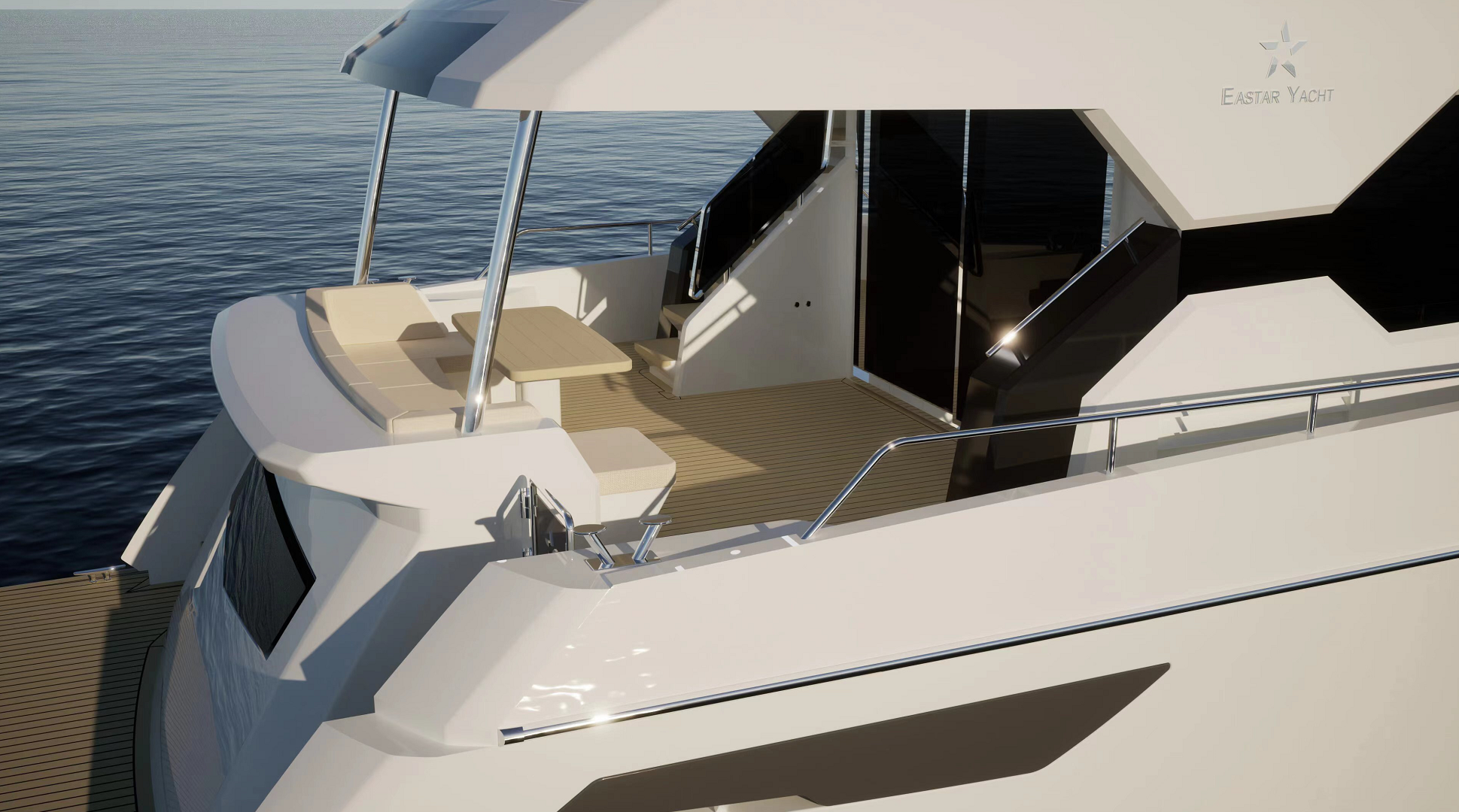 風格獨特的前甲板設計,寬敞,明亮,有一望無際的視野,社交區(qū)域的打造??蓙辛㈠塾?,在馳騁的速度中追逐著夕陽與海浪。在寬敞舒適的后甲板上,沐浴斜陽下,盡享海浪海風的溫柔。
