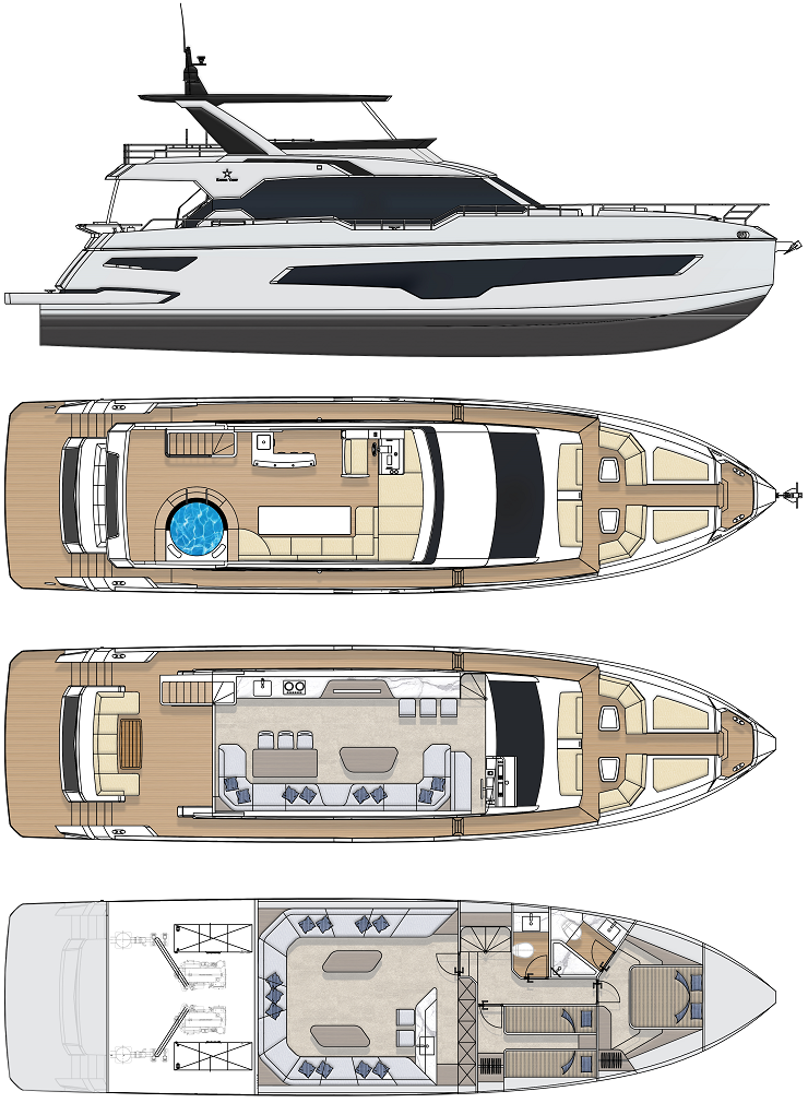 戰(zhàn)斧型船艏設計,流體線型船身,動感活力,平穩(wěn)且舒適,無懼風浪,穩(wěn)中前行,可適應各類復雜水域。新貴的氣質,透露著沉穩(wěn)的底蘊。現代型外觀設計,重塑時尚標桿, 領先藝術風尚。